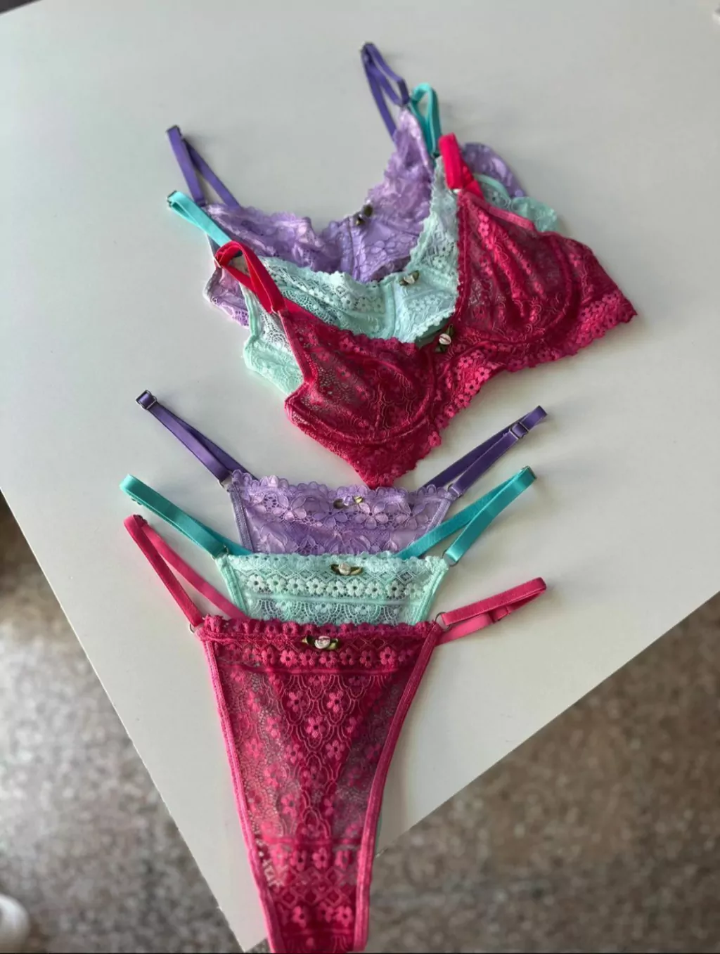 Descubrí el conjunto ZARA, un diseño delicado en encaje con arco sin taza que ofrece un estilo único y sensual. Este conjunto incluye un corpiño y less con detalle de florcita, aportando un toque femenino y sofisticado. Los breteles regulables garantizan un ajuste cómodo y personalizado. Disponible en varios colores para combinar con tu estilo y resaltar tu belleza natural.